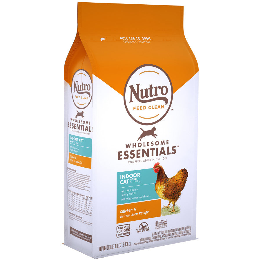 - Contains one (1) 3 lb. bag of NUTRO WHOLESOME ESSENTIALS Indoor Cat Adult Chicken & Brown Rice Recipe Natural Cat Food Plus Vitamins, Minerals, & Other Nutrients