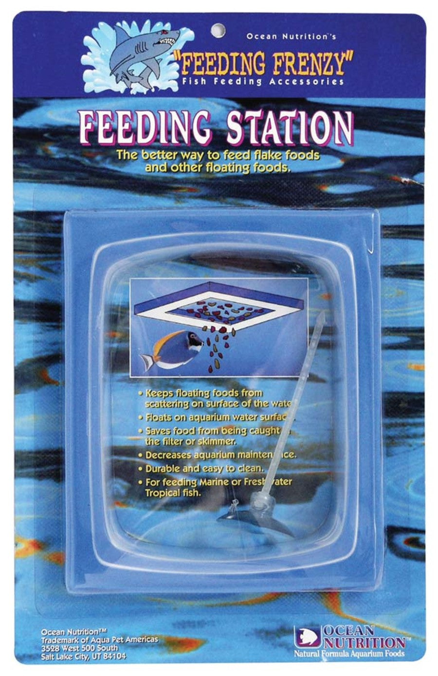 - Use Instructions: 1. Remove feeding station from package and be sure that the plastic insert is completely seated into the foam framework. Place the feeding station onto the surface of the aquarium water in an area suitable for fish feeding. (The station may be placed in a corner or along any single flat inside surface.)2. Place flake food or any floating food within the enclosed feeding area of the feeding station. Step away from the aquarium and observe fish as they feed at their leisure. After repeated use, the feeding station will become more and more familiar to aquarium fish as the area where food will be found.3. The feeding station should remain in place and will even move up and down with changes in the surface level of the water. Should it become detached, simply reattach it in an area with less surface water movement.4. The feeding station can even be used with frozen foods. We strongly recommend frozen formula foods (formula one and two, brine shrimp plus, prime reef, spirulina formula, etc.) and frozen single items (bloodworms, brine shrimp, squid, etc.) from ocean nutrition.