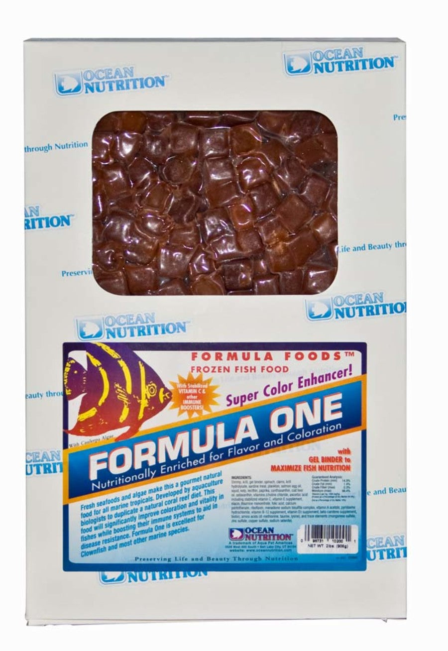 Fresh seafood and algae make this a gourmet natural food for all marine tropical's. Developed by aquaculture biologists to duplicate a natural coral reef diet. This food will significantly improve coloration and vitality in fishes while boosting their immune systems to aid in disease resistance. Formula One is excellent for Clownfish and most other marine species.
