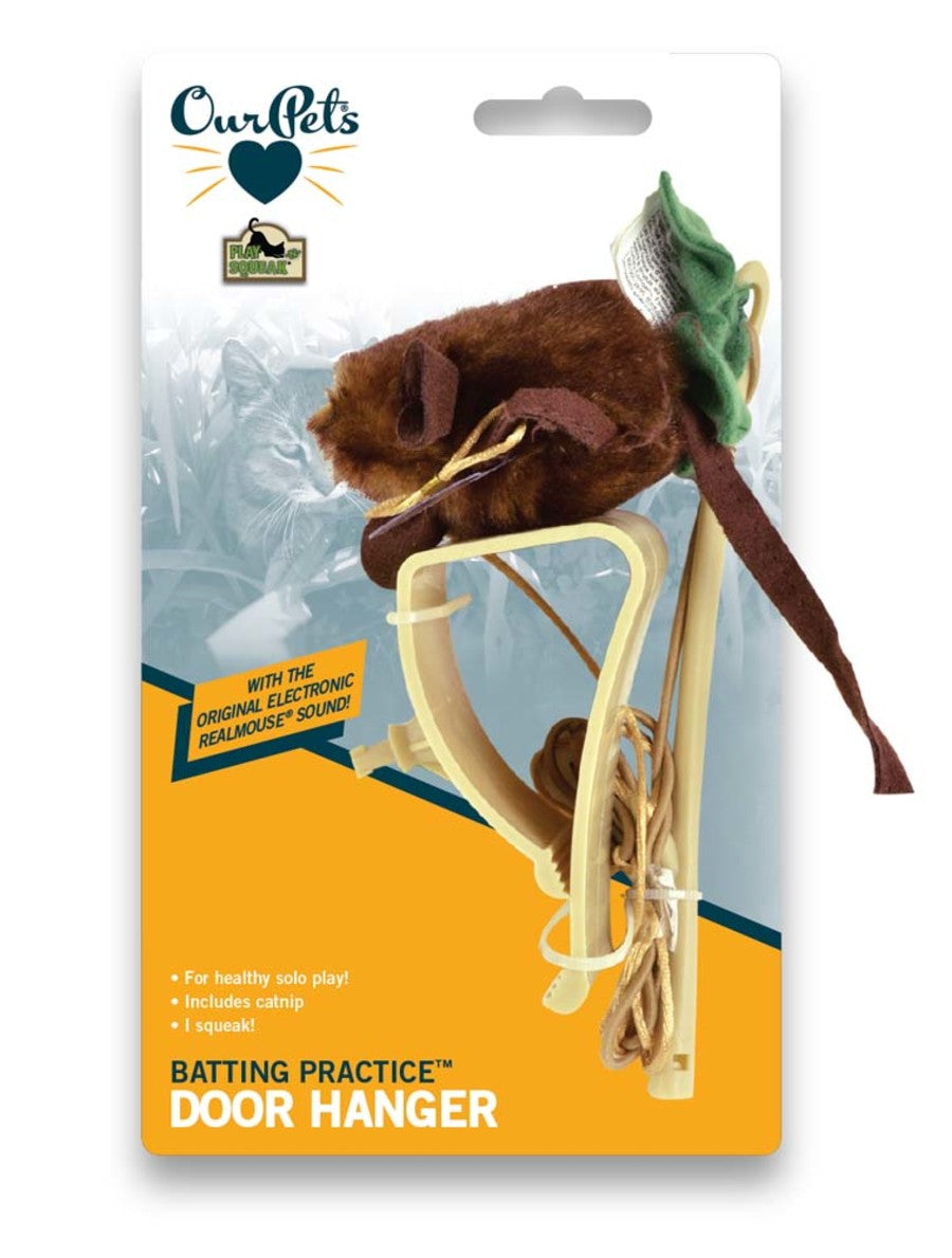 Hangs from the top of any door, contains real catnip and squeaks just like a real mouse!