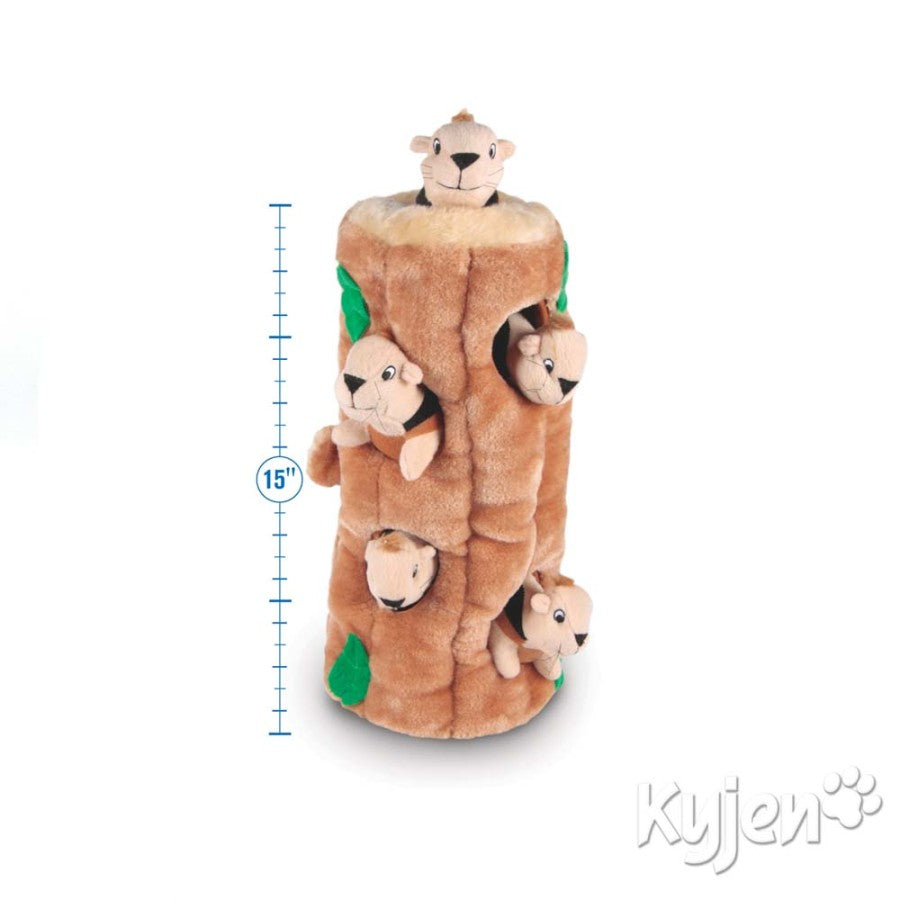 What's more fun than chasing squirrels at the park? Chasing squirrels at home of course! Finally there's a toy version of your pup's favorite pastime. Just stuff the squeaky squirrels in the soft tree trunk, and watch your dog pull them out one by one.