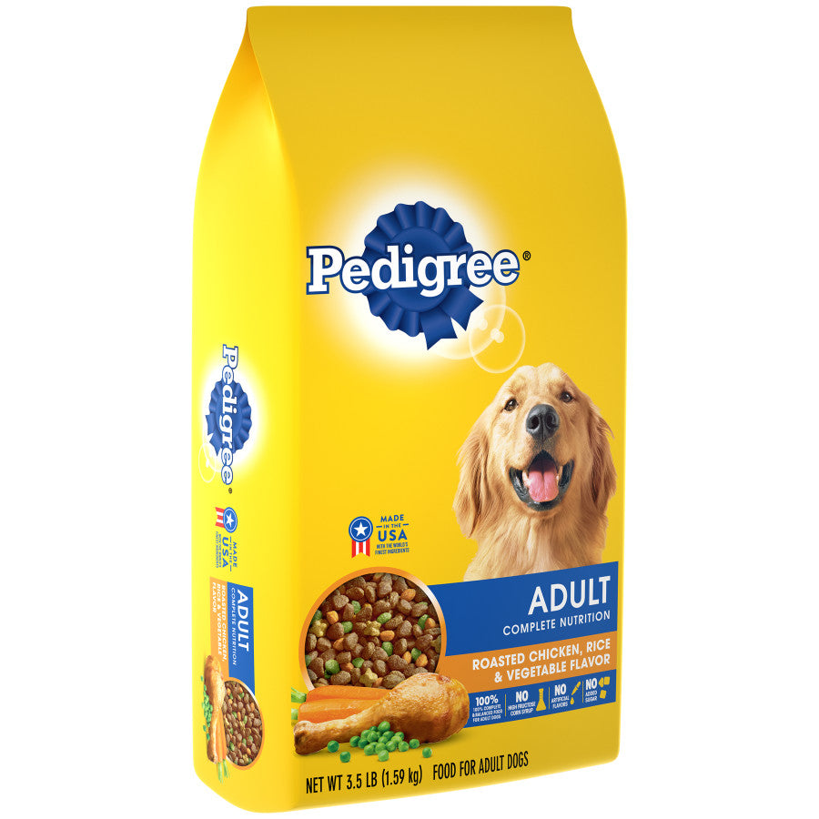 - Contains one (1) 3.5 lb. bag of PEDIGREE Complete Nutrition Adult Dry Dog Food, Roasted Chicken, Rice & Vegetable Flavor