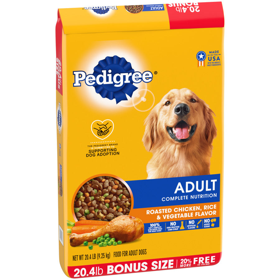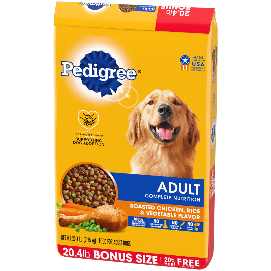 - Contains one (1) 20.4 lb. bag of PEDIGREE Complete Nutrition Adult Dry Dog Food, Roasted Chicken, Rice & Vegetable Flavor