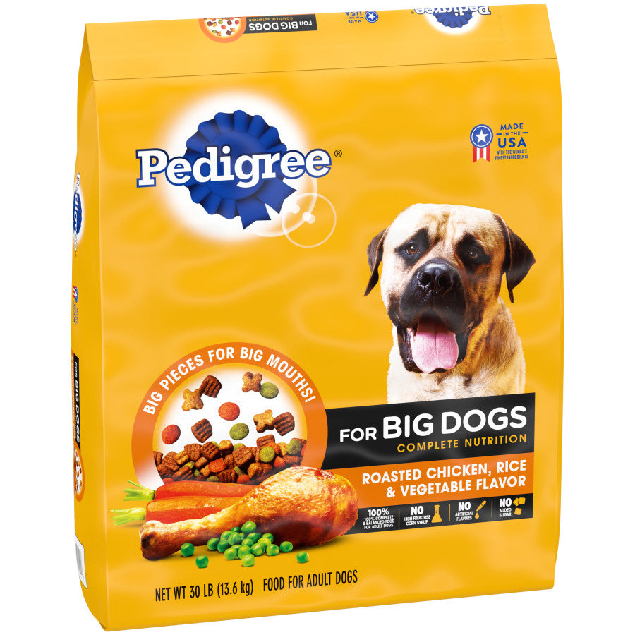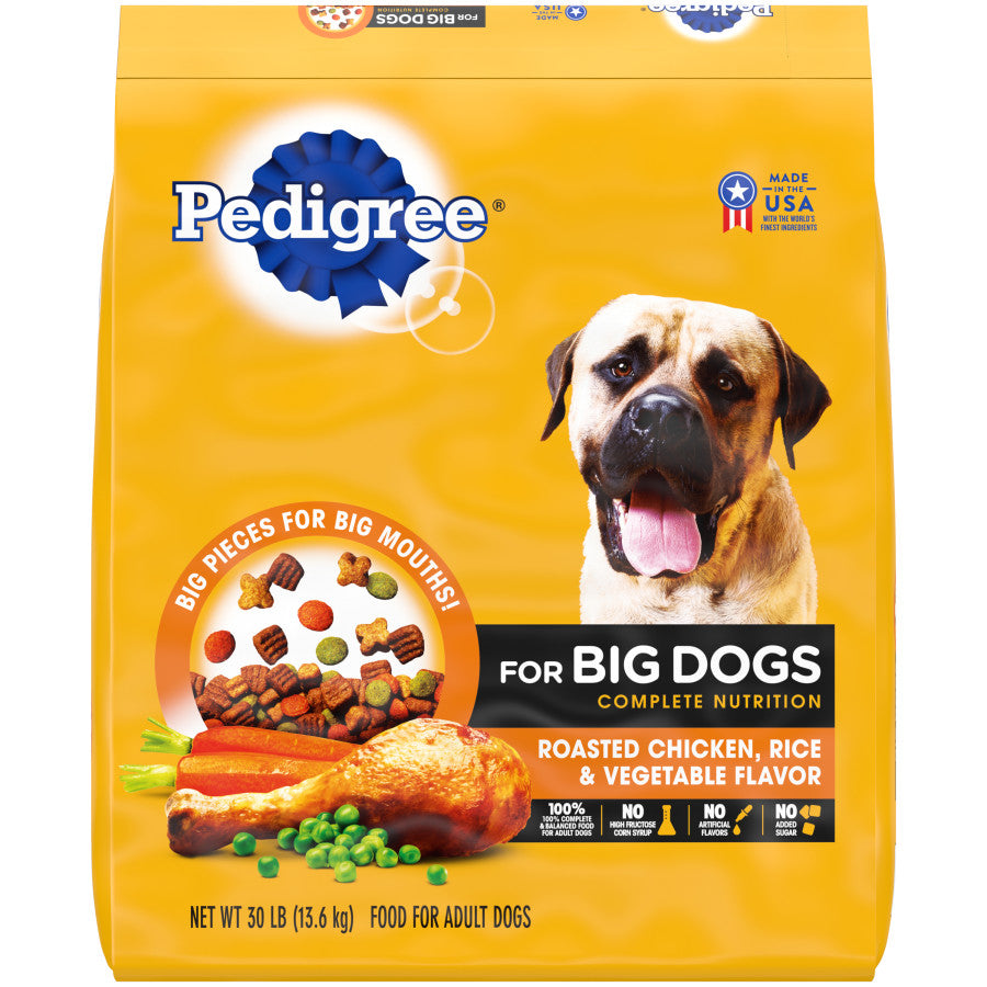 - Contains one (1) 30.1 lb. bag of PEDIGREE For Big Dogs Adult Complete Nutrition Dry Dog Food Roasted Chicken, Rice & Vegetable Flavor