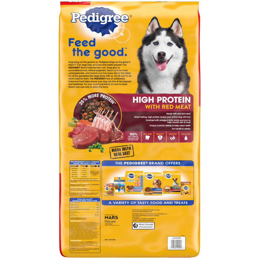 - Made with real red meat and 25% more protein than PEDIGREE Adult Complete Nutrition