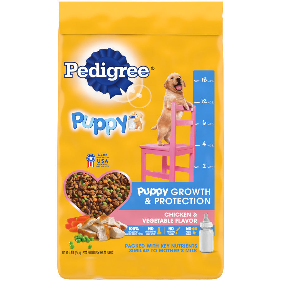 - Contains one (1) 16.3 lb. bag of PEDIGREE Puppy Growth & Protection Dry Dog Food Chicken & Vegetable Flavor