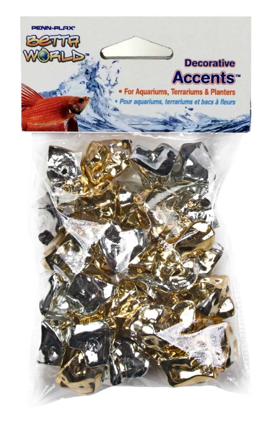 Add some fun to your aquarium with these decorative accents from Betta World by Penn-Plax! Each package includes 35 Chrome-A-Stone seashapes in metallic gold and silver.