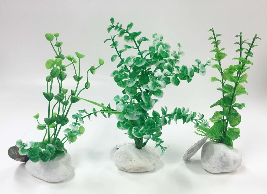Add natural beauty to your aquarium with Rock Plants from Penn-Plax. Each 6in green Rock Plant features an authentically detailed replica of an actual aquatic plant sitting a top a real rock base. Rock Plants are crafted from durable, non-toxic plastic and rock and are safe for all aquatic environments.