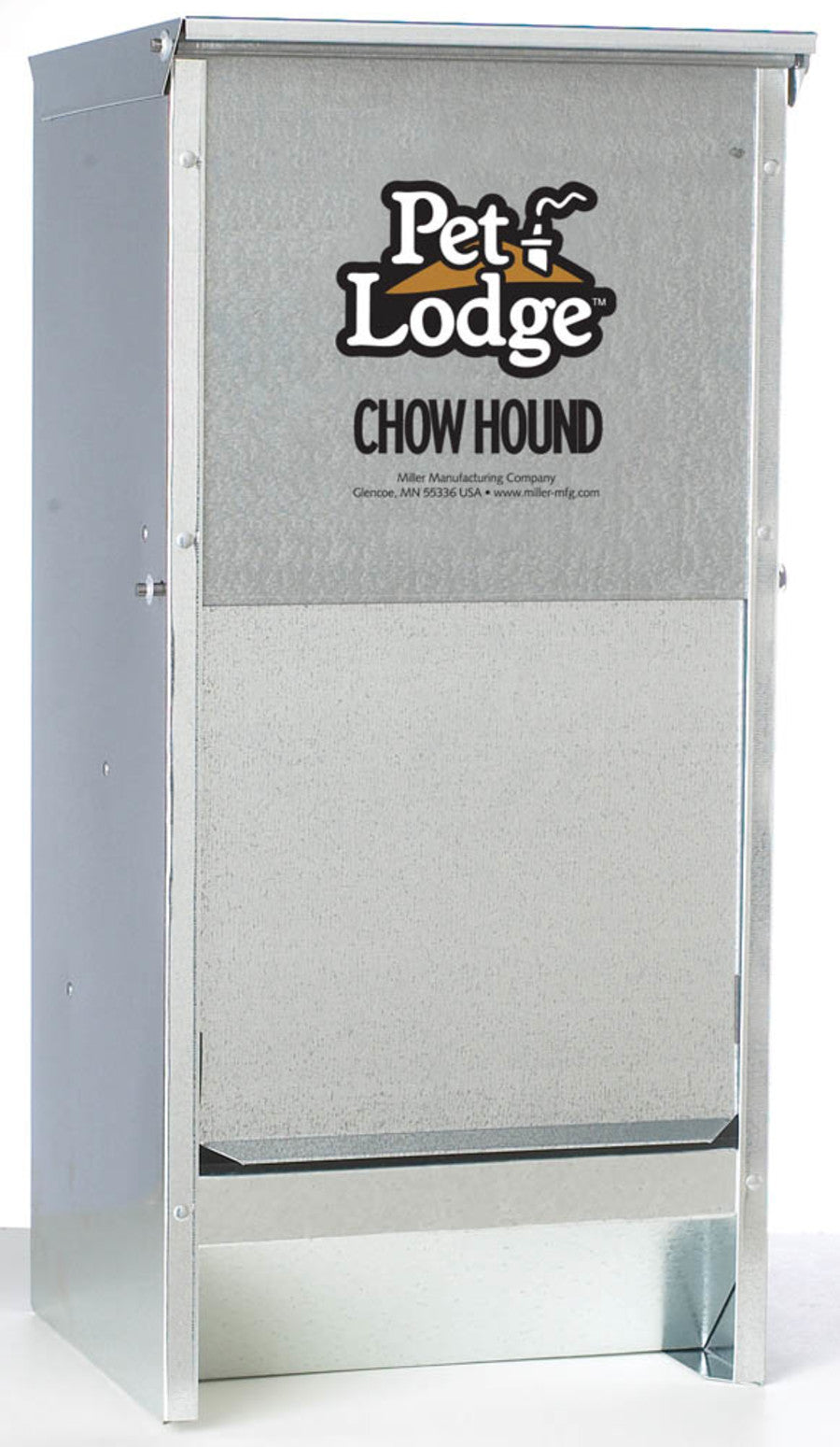 Chow Hound Automatic Dog Feeders are manufactured from tough galvanized steel for durability. A specially angled chute provides a steady food flow on demand. The magnetized door stays shut until your dog nudges it open. Food stays fresh dry and free from unwanted pests. Fully assembled.