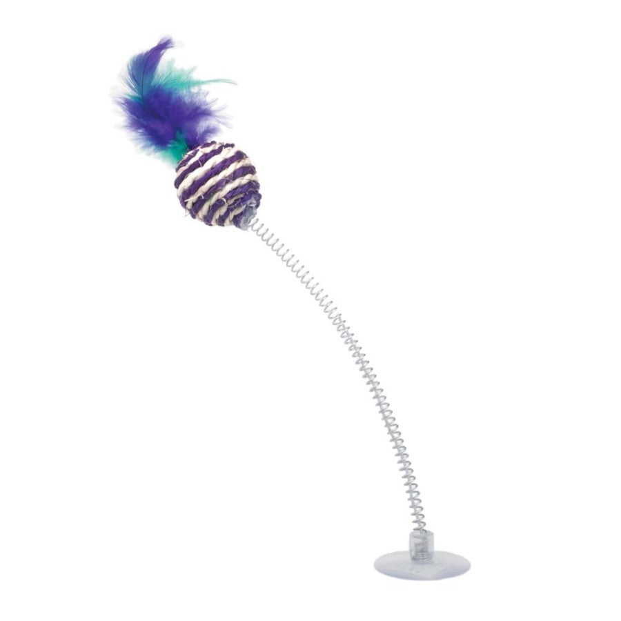 Spring TimeTM has a strong suction cup that adheres to most flat surfaces. The chaotic movement keeps cats entertained and provides plenty of exercise!