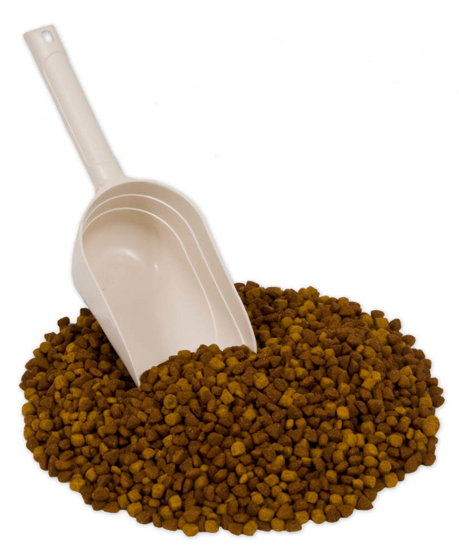 The Petmate® Food Scoop with Microban® helps to prevent the growth of odor, mold, mildew and stain causing bacteria that can ruin your pet's food. Includes indicator lines for accurate portion control to allow you to manage the proper amount of food you give to your pet. Easy to clean and is dishwasher safe. Made with 25% recycled content to help the environment. Made in the USA.