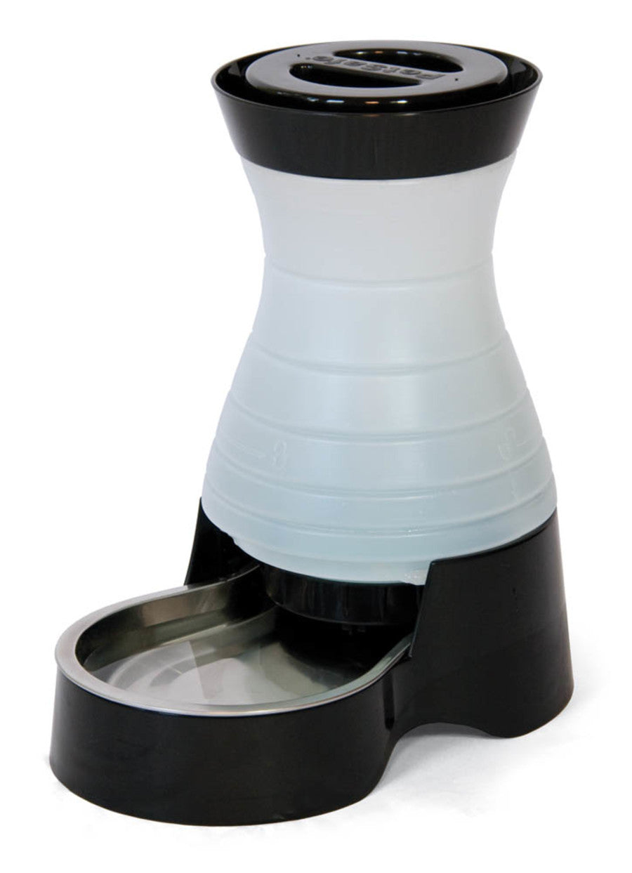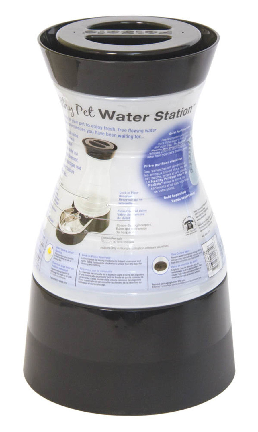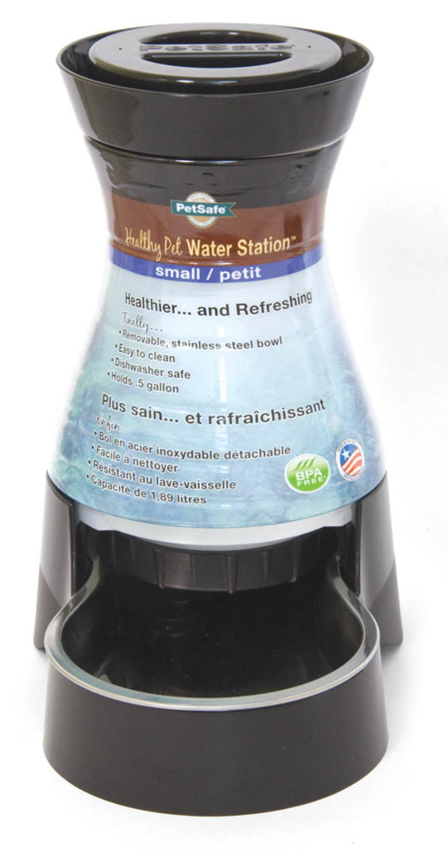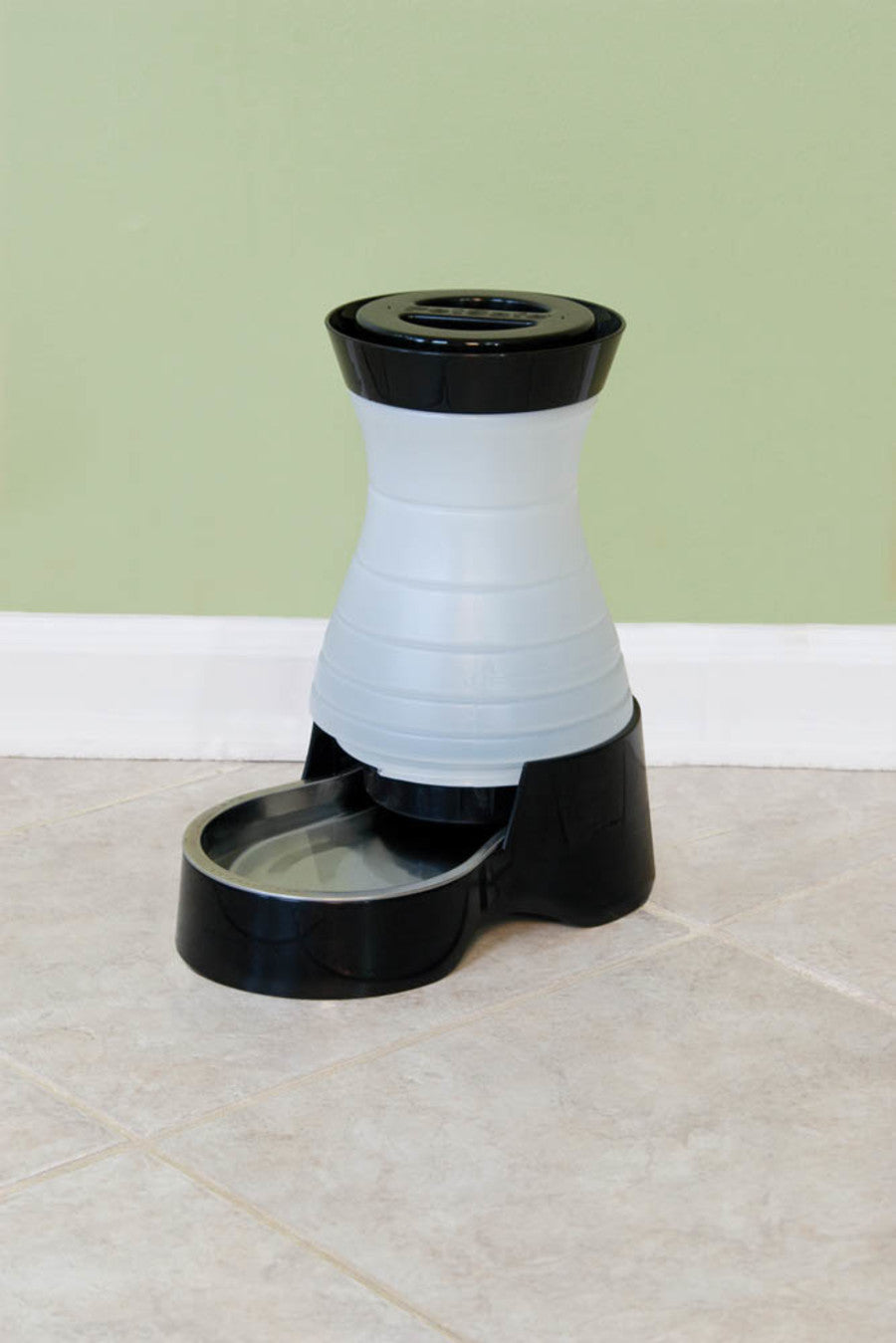 Removable, Stainless Steel Bowl (#1 material vets recommend to support health and cleanliness). Water filter removes chlorine, sediments and odor from your pet's drinking water. Wide Wash & Clean Opening--Easier to clean by hand or with cleaning tool. Water Flow-Control Valve prevents water from spilling during refilling and carrying. Automatically releases water from reservoir when attached to base.