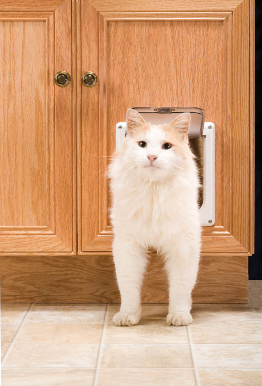 These cat doors are ideal for providing access to food and litter, when food and litter is kept out of sight.