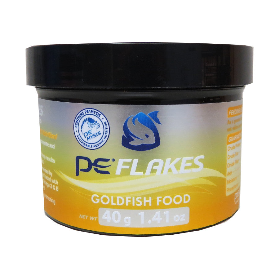 PE Mysis Flakes Goldfish Food are the first aquarium fish food flakes for goldfish to be formulated with fresh PEMYSIS shrimp as the leading ingredient! PE Mysis Flake foods for goldfish are an extremely palatable, and nutritionally complete fish food flake diet designed to enhance coloration and induce an energetic feeding response in all varieties of goldfish. PE Mysis are harvested at nighttime from a freshwater lake in Canada when the Mysis are actively feeding on phytoplankton and zooplankton near the surface. This natural diet rich in phytoplankton which PE Mysis prey upon is what makes PE Mysis such an ideal food for omnivorous goldfish. Fresh PE Mysis shrimp incorporated as the leading ingredient into the formulation of PE Flakes for goldfish enables preservation of nutrition during production, protecting the integrity of the ingredients resulting in a digestible diet which does not foul your aquarium water and provides all the necessary nutrition for goldfish. PE Mysis Flakes goldfish food is an ideal food for a variety of fancy goldfish such as Fantail goldfish, Oranda goldfish, Pearscale goldfish, Ryukin goldfish in addition to common goldfish comets, koi and other pond fish.
