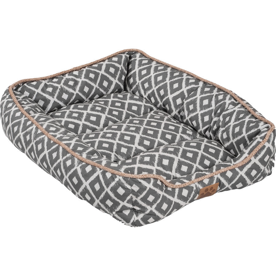 Let your dog snooze the day away with the SnooZZy IKAT Gray Drawer Bed that is uniquely designed to slide under or into the dark places your pet may like to cuddle up and sleep. This stylish, cozy bed is made from a luxurious plush fabric based on an Indonesian decorative dye technique. The overstuffed bolster provides additional support for your pet's head, neck, and back making it perfect for large dogs who like to stretch out when sleeping. To clean, simply machine wash on cold.