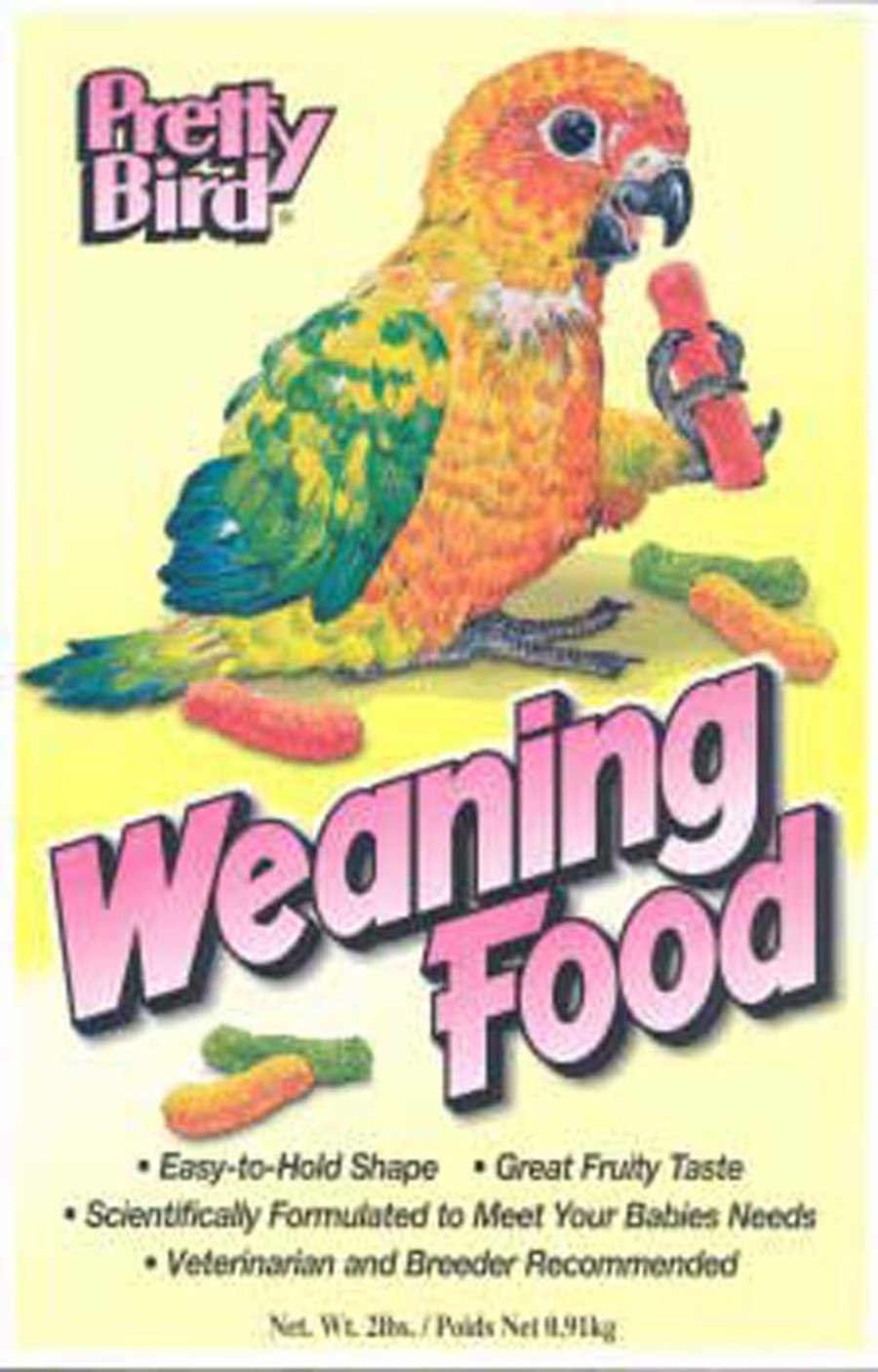 This product has the same nutrition as the breeder food but is extruded in a corn curl shape that is easier for young birds to hold while they are learning to eat. Weaning can be fed either dry or moistened and is available in 2 lb., 5 lb., and 20 lb. Packages.