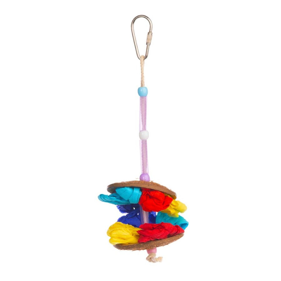 Prevue Pet Products Appeteaser 62519 is a colorful, dangling pull toy designed for satisfying preening instincts and discouraging plucking in your bird. Our Appeteaser toy is made from an assortment of straw, cotton twine, and multicolored paper providing your bird with mental stimulation and hours of fun. The coconut shell and plastic beads are perfect for beak and tongue exercise. All materials are 100% pet safe with non-toxic, food-grade colors and connect easily to cage with stainless steel quick-link attachments– actual measurements may vary slightly. As always, supervise birds at play. Our Appeteaser toy measures 3 diameter and 3 high. Ideal for x-small, small, and medium birds measuring 4 to 18 beak to tail.