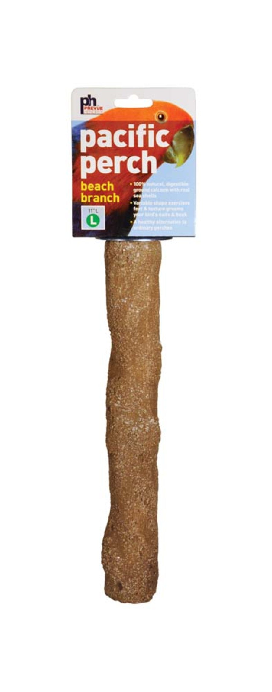 Prevue Pet Products Pacific Perch Beach Branch Large 1012 is a great natural foot exercise perch for your bird. An uneven surface with a tapered diameter encourages healthy foot exercise while the hard sea shell coating adds texture for grooming beaks and nails. Each Beach Branch perch is made with natural ground seashell to provide your bird with calcium as it chews. Tough and long-lasting, Pacific Perches attach directly onto your cage. Each Pacific Perch Beach Branch Large 1012 perch measures 12” Long with a diameter varying from 1 ½” to 2 1/4”
