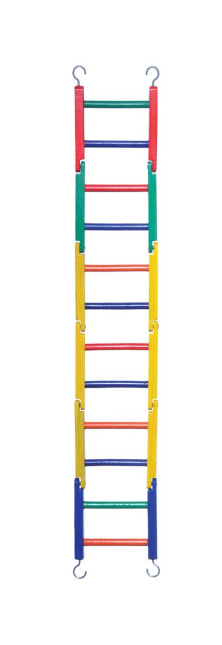 Prevue Pet Products Carpenter Creations 24 Multi-Color Jointed Wood Ladder 1140L features high quality, heavy-duty construction to provide your bird with exercise and playful activity. Top and bottom hook hanging posts are easy to place in your bird’s cage and allow for easy bending and re-positioning. Visually engaging to encourage interactive play, our wood ladders are multi-colored with 100% pet safe, food grade, coloring. Our Carpenter Creations 12 rung bendable wood ladder measures 4 1/4 wide and 24 high.