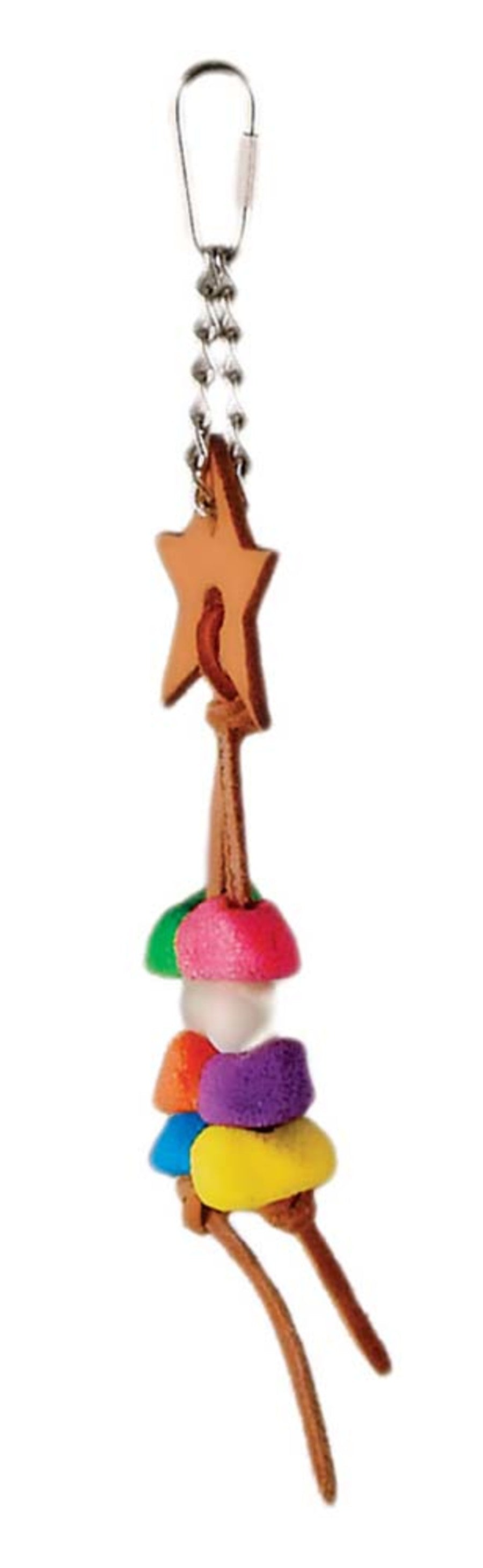 Prevue Pet Products Cosmic Crunch Venus 62071 is made from extraordinarily durable pulverized sea shell clusters. Your bird will shave away at the toy, keeping beaks and nails groomed. Made from 100% pet safe materials with non-toxic, food grade colors, Cosmic Crunch toys may include leather shapes or strips, cotton rope, wood block, latex rope and plastic beads. Easily connect toy to your cage with quick-link attachment. Toy is hand made and actual measurements may vary slightly. As always, supervise birds at play. Our Cosmic Crunch Venus bird toy is 7 5/8 Long and 2 Wide, ideal for Small to Medium sized birds.