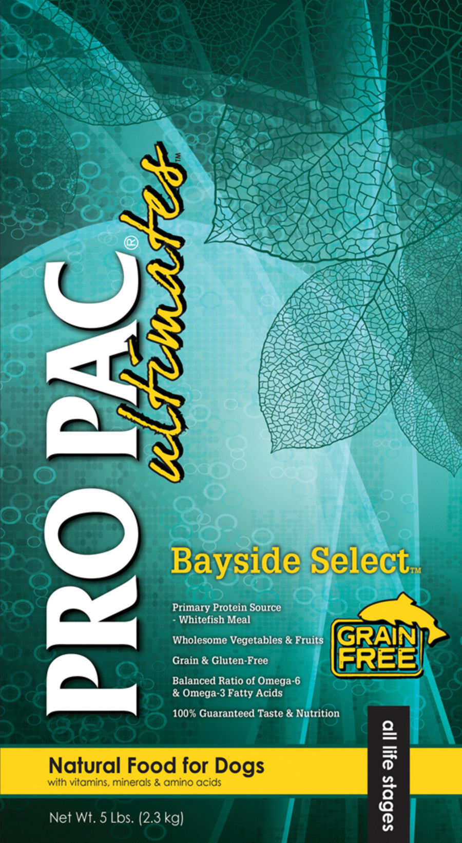 After a long day at sea, the fishermen bring their bounty to the bay. The aroma from that catch is found in PRO PAC® Ultimates Bayside Select. Your dog will love the hearty grain-free, gluten-free whitefish meal and potato formula, which provides the ultimate in canine nutrition. PRO PAC® Ultimates Bayside Select uses a primary protein source from premium quality whitefish meal which provides essential amino acids to help maintain strong muscle and a healthy, shiny coat. This antioxidant formula is fortified with Vitamin A and Vitamin C along with nutrient-rich vegetables and fruits like peas, chickpeas, apples, blueberries, carrots, spinach and cranberries. The fibers from these vegetables and fruits also aid in overall digestion. PRO PAC® Ultimates Bayside Select is nutritionally balanced and fortified with proper levels of Omega-6 and Omega-3 fatty acids to help support a healthy skin and hair coat. Fortification with L-Carnitine helps burn fat and maintain lean muscle mass to support a healthy, active lifestyle. PRO PAC® Ultimates is fortified with chelated minerals to allow for higher absorption helping digestion, immune function and healthy skin and hair coat. PRO PAC® Ultimates Bayside Select is 100% guaranteed for taste and nutrition.