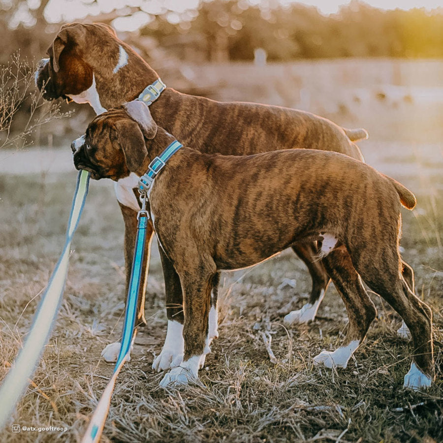 Just Go Pro with Pet Attire Pro collars, leashes and harnesses featuring bright, sporty colors on comfortable, padded, edged webbing with fashionable hardware.