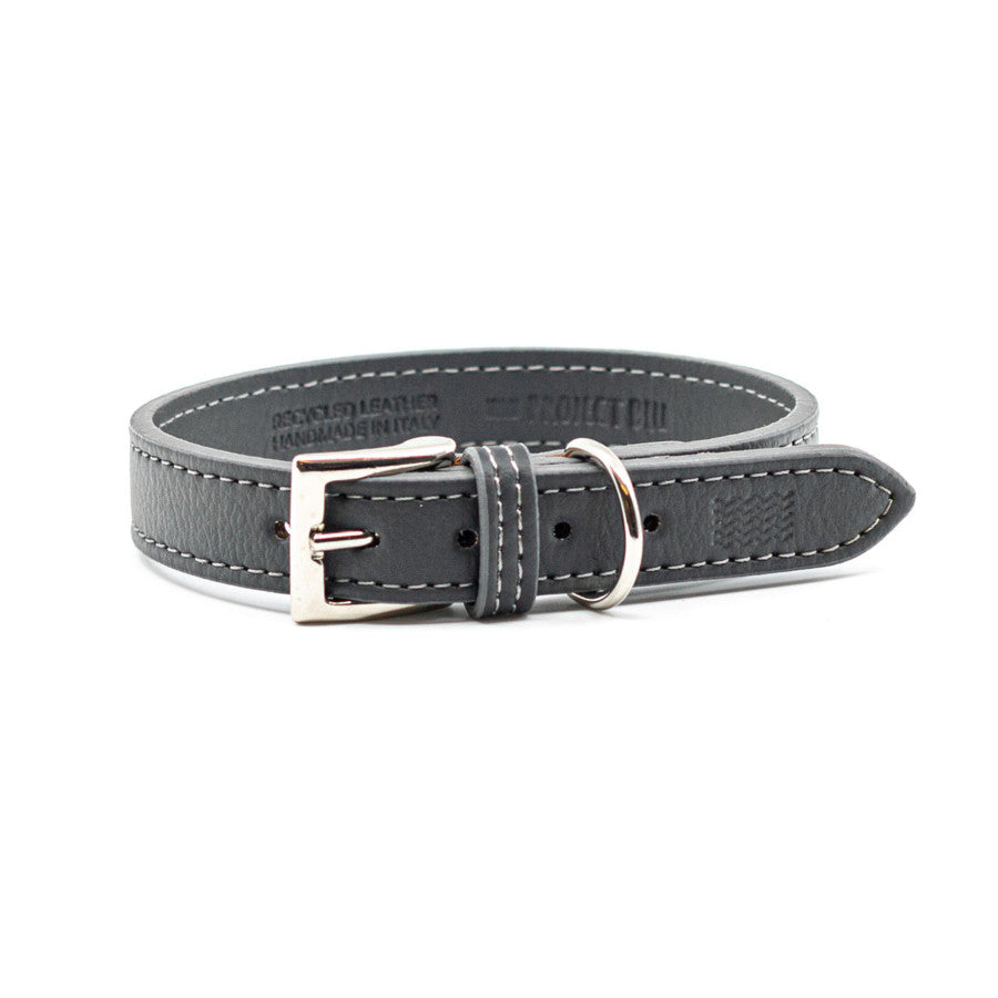 This smooth grey collar has a premium feel, with solid nickel fixings and a sophisticated ELeather strap; ensuring that the collar is ready for anything that the weather, or your dog, might throw at it. Traditional leather-making methods cause significant environmental damage through their use of highly-polluting processes and carcinogenic chemicals. That’s why we have teamed up with Eleather, experts in the upcycling of discarded leather, to produce top-quality, sustainable pet products. Eleather’s unique process reduces waste, saves water and lowers carbon emissions. The result is a premium recycled collar which is indistinguishable in look and feel from traditionally-produced leather. Comes in five sizes from 11.8 to 19.6 ins and a matching Malibu leash is also available to complete the look.