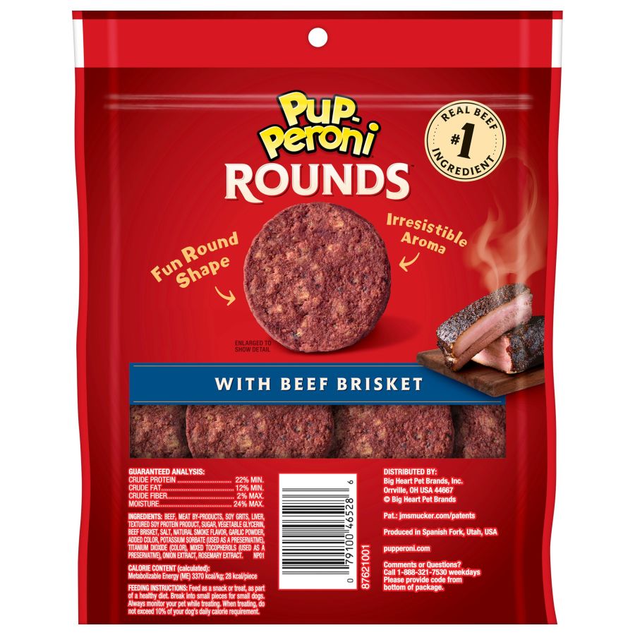 Pup-Peroni Rounds dog treats are a great way to give your dog more of the brand they love—in a fun, round shape. Made with real beef as the number one ingredient, these soft and chewy dog treats are a perfect reward for good behavior, or just an exciting anytime snack. Their irresistible aroma and mouthwatering taste will have your furry friend rolling over backwards for more. And because you know they’re made with no artificial flavors, fillers, red 40 or added grains, you can feel confident that these dog snacks are worthy of your best friend. Order now and give your dog an all-around tasty treat.