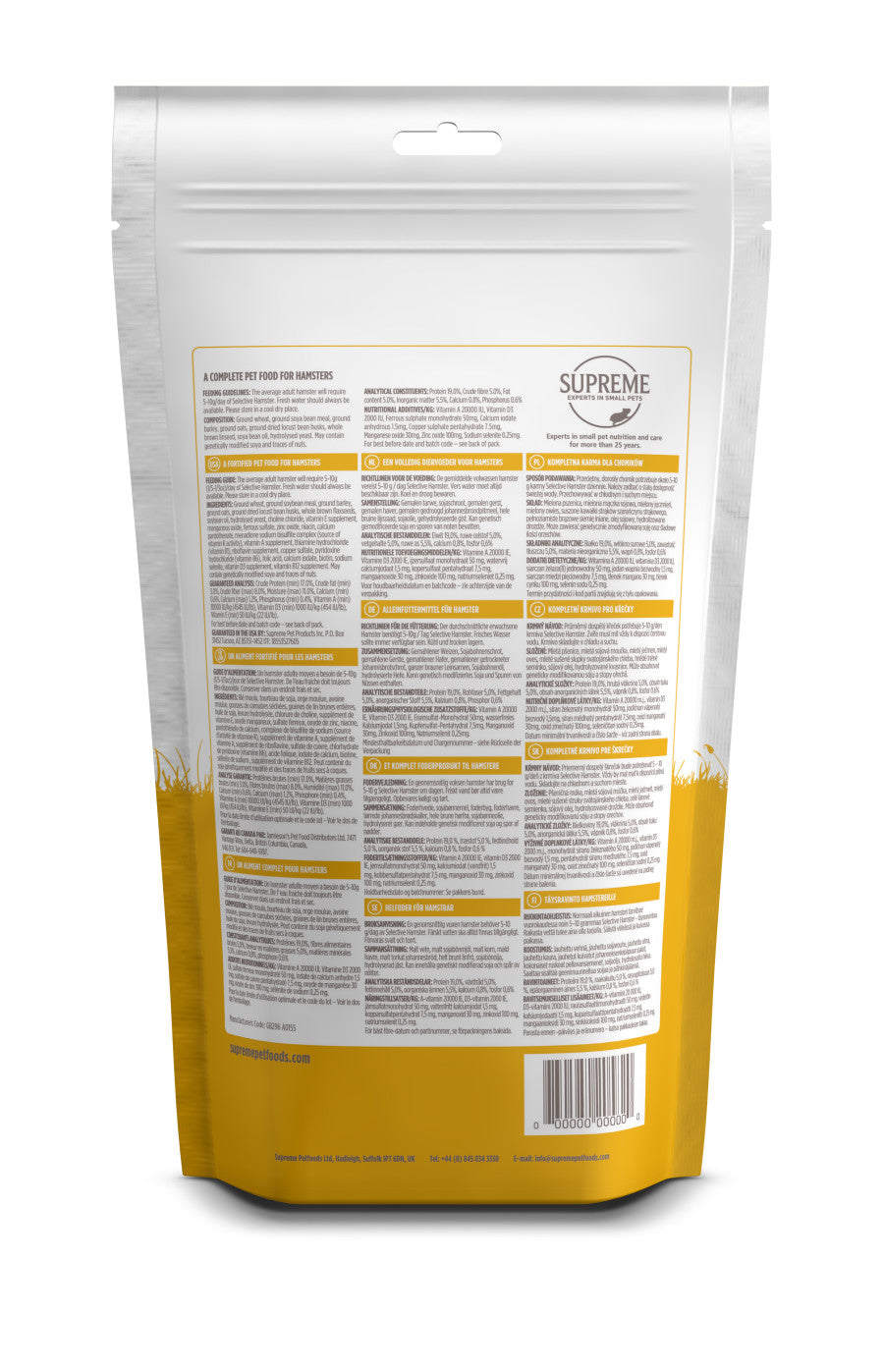 A nutritionally complete diet with oats and barley, formulated specifically to meet the nutritional requirements of hamsters. Selective is rich in tasty wholegrain goodness. A daily diet for hamsters of all breeds, including dwarfs. Experts in veterinary medicine and nutritionists are involved in the formulation of Supreme Science Selective recipes to ensure the very best for your small pet.