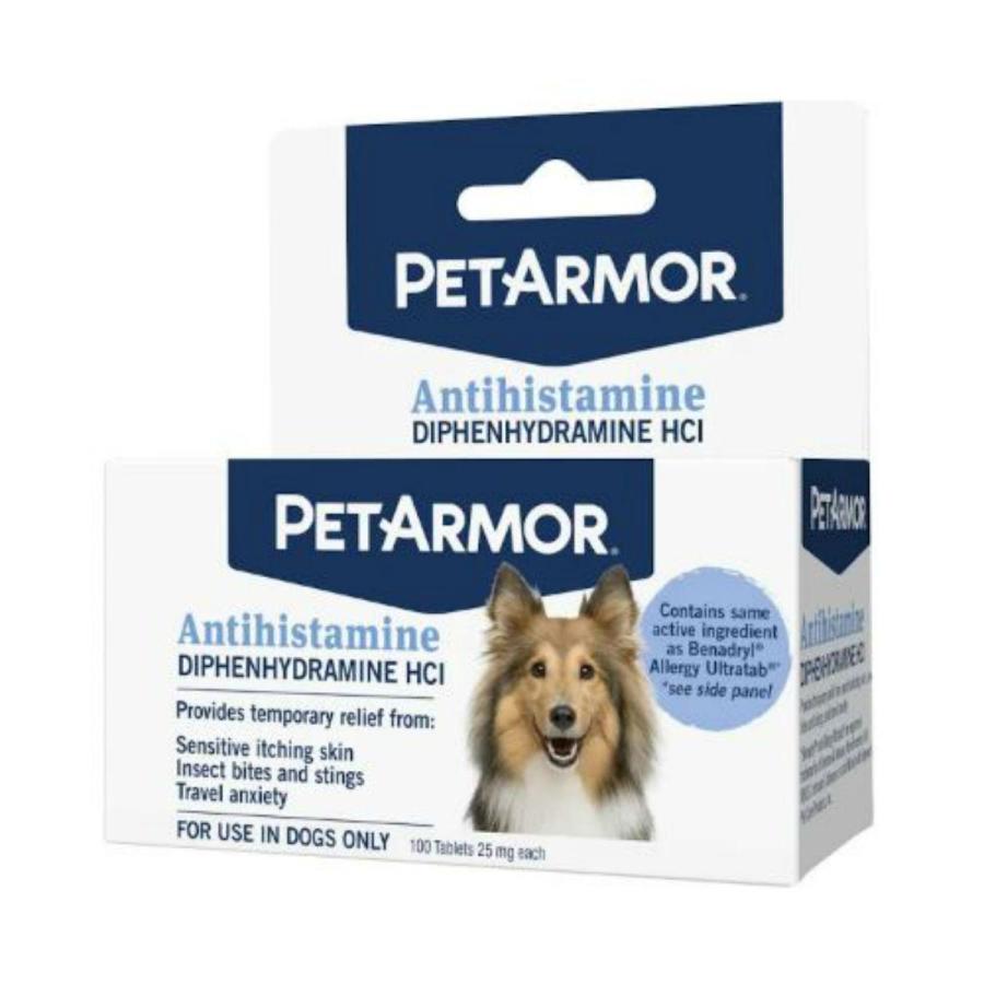 If your furry family member suffers from sensitive, itchy skin and allergies, try PetArmor Antihistamine Diphenhydramine HCI Dog Treatment. These tablets are easy to swallow and help provide your pet with temporary relief. This supplement contains the same active ingredient as Benadryl Allergy Ultra Tablets and is a great option if your buddy gets bit or stung by insects. You can also feed this supplement to your paw-tner to help ease her travel anxiety.