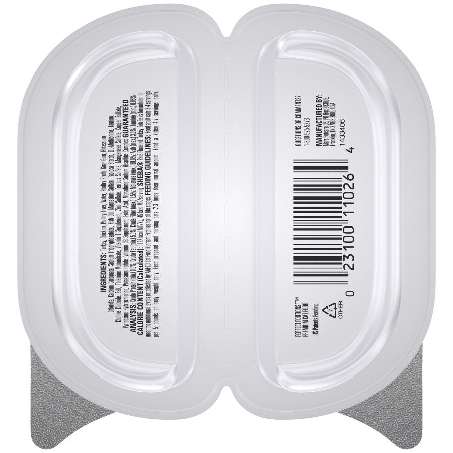- Contains twenty-four (24) 2.6 oz. PERFECT PORTIONS twin pack trays (48 servings total) of SHEBA Wet Cat Food Paté, Roasted Turkey Entrée