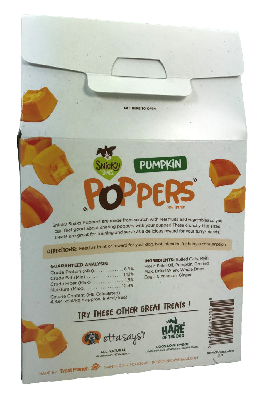 Snicky Snaks 10oz Poppers are made from scratch with wholesome ingredients so you can feel good about treating your dog! These crunchy, bite-sized treats are great for training and as a delicious reward for your dog every day. Go ahead, pop open a box and share some love!