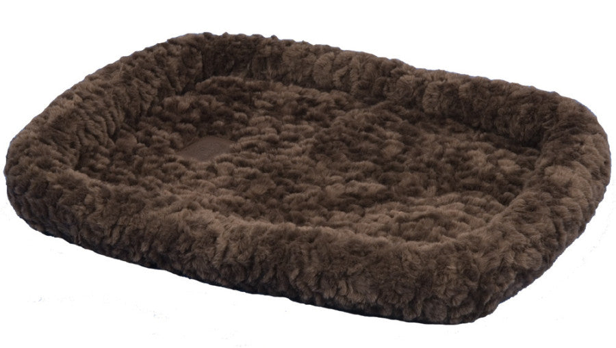 Petmate® Plush Bolster Kennel Mats are specifically designed for use in the car, at home, or inside crates. Comes in a variety of sizes and designed to fit standard wire dog kennels from sizes 19 inches to 48 inches. Petmate Plush Bolster Kennel Mats bring comfort to your pet while being in their kennel when you're away. Designed to keep your pet warm and cozy, the sleep surface is made up of a soft and cozy plush fabric. As your pet curls up and nestles into the perfect position, they can rest their head on the thick, comfy bolster for added support. A non-skid bottom helps keep the mat in place. Whether you are crate training or on the go, the convenient, lightweight design of the Plush Bolster Kennel Mats makes them easy to roll up for travel. For easy cleaning, they are Machine Washable. Compatible kennel sizes and mats are as follows: XS = 19 inch kennels, S = 24 inch kennels, M = 30 inch kennels, L = 36 inch kennels, XL = 40 inch kennels, GIANT = 48 inch kennels.