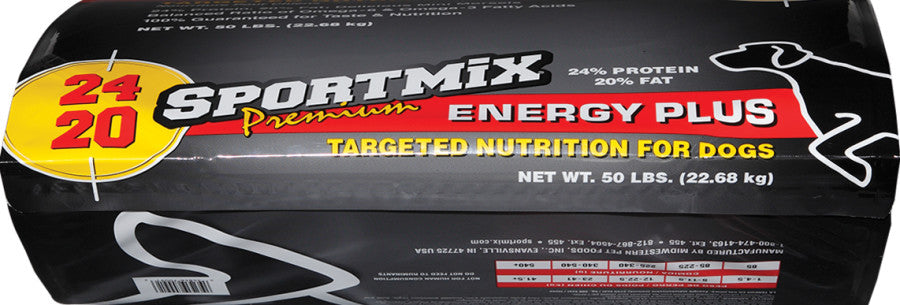 SPORTMiX® Energy Plus Adult Mini Chunk 24/20 is formulated for highly active dogs needing a maximum high level of energy. Dogs participating in competition events demand a food that will allow them to withstand days of grueling field trials. This formula is designed to meet the needs of these high stress working dogs. Formulated with supplemental flaxseed, SPORTMiX® Energy Plus Adult Mini Chunk helps ensure an improved Omega-6/Omega-3 fatty acid balance promoting a healthy skin and coat. SPORTMiX® Energy Plus is naturally preserved and has a taste dogs love. SPORTMiX® Energy Plus is formulated to meet the nutritional levels established by the AAFCO Dog Food Nutrient Profiles for maintenance. Available in 55, 50 and 40 lb. bags.
