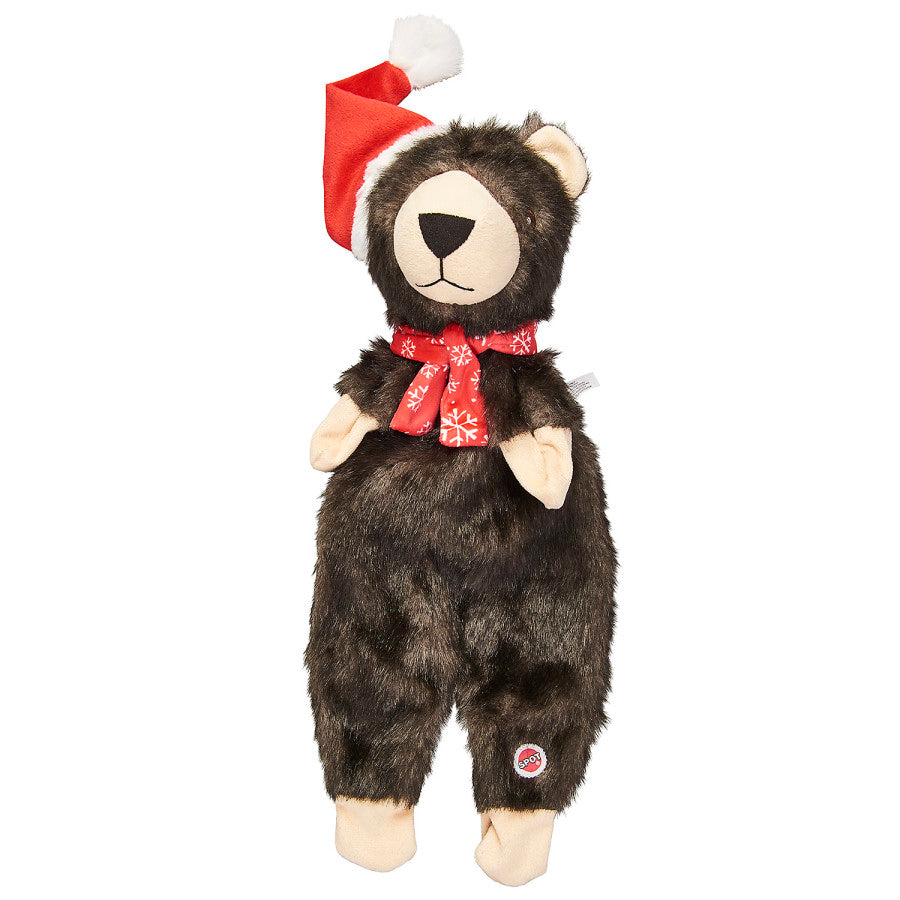 - Soft and cuddly plush dog toys with holiday themed scarves
