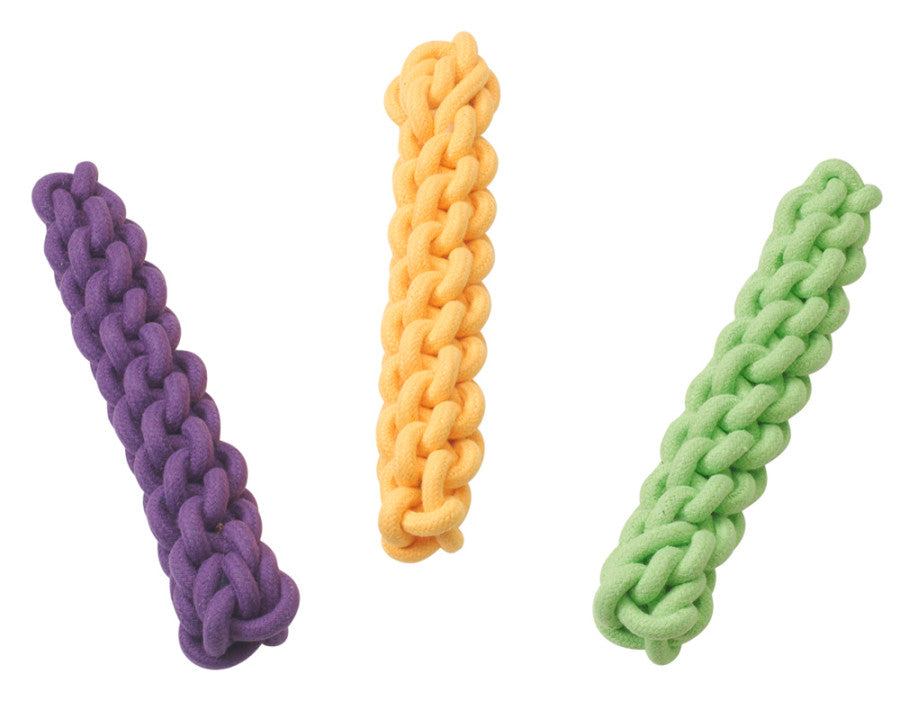 Durable braided ten inch rope stick made from nautical rope used in boating. Three bold color assortment.
