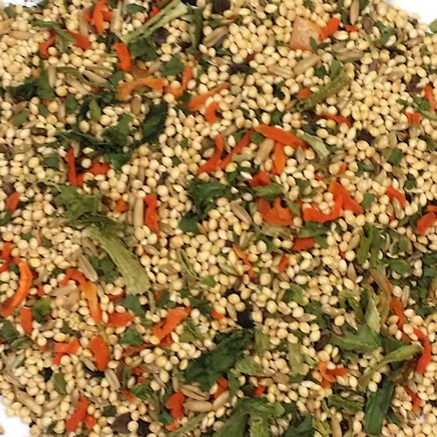 - Ingredients: White Proso; Canary Seed; Oat Groats; Rape Seed; Flax Seed; Buckwheat; Carrots; Papaya; Spinach; Niger Thistle; Safflower Oil; Soy Flour; Vitamin E Supplement; Zinc Oxide; Ferrous Sulfate; Calcium Carbonate; Niacin; Vitamin A Acetate; Copper Sulfate; Ascorbic Acid; Sodium Chloride; Thiamine Mononitrate; Vitamin D3 Supplement; Riboflavin; Pyridoxine Hydrochloride; Folic Acid; Calcium Pantothenate; Vitamin B12 Supplement; Inositol; Potassium Chloride; Magnesium Oxide; Dicalcium Phosphate; Choline Chloride; Manganous Oxide; Ethylenediamine Dihydriodide