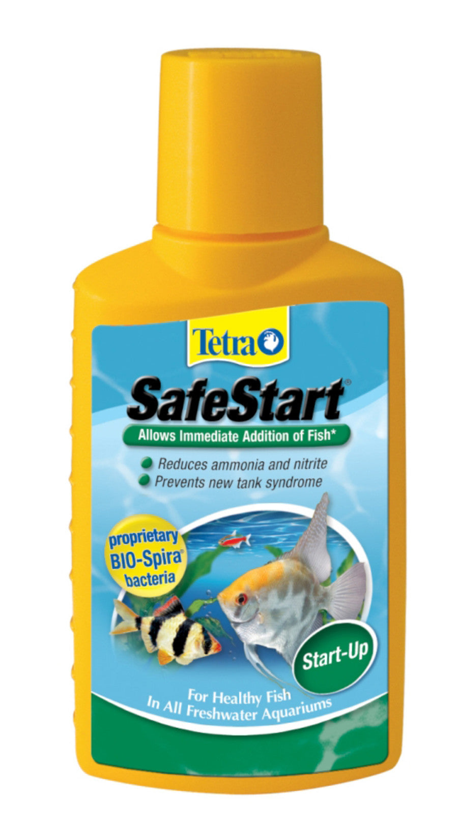 SafeStart accelerates the establishment of the bio-filter in newly set-up freshwater aquariums. The live bacteria start working immediately to provide a safe and healthy environment for your fish withouth the long wait. SafeStart can also be used after a water change, when adding fish or after medicating. Features & Benefits: Live nitrifying bacteria start working immediately to reduce dangerous ammonia and nitrite. SafeStart prevents new tank syndrome for healthy fish. the patented mix of Nitrosomonas, Nitrosospira & Nitrospira is proven to work. Shelf-stable formula requres no refrigeration for added convenience. Treats 15 gallons.