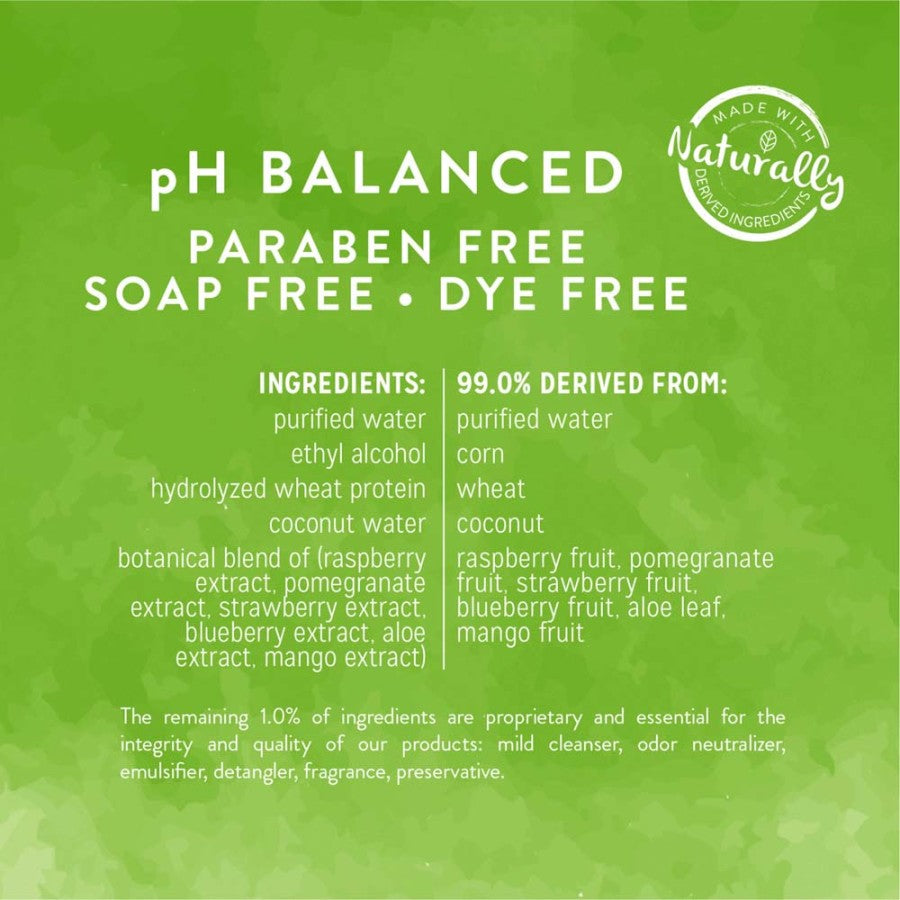 - Ingredients: Purified Water; Mild Cleanser; Hydrolyzed Plant Protein; Odor Neutralizer; Organic Blend Of (White Plum Extract; Cucumber Extract; Avena Sativa Oatmeal)