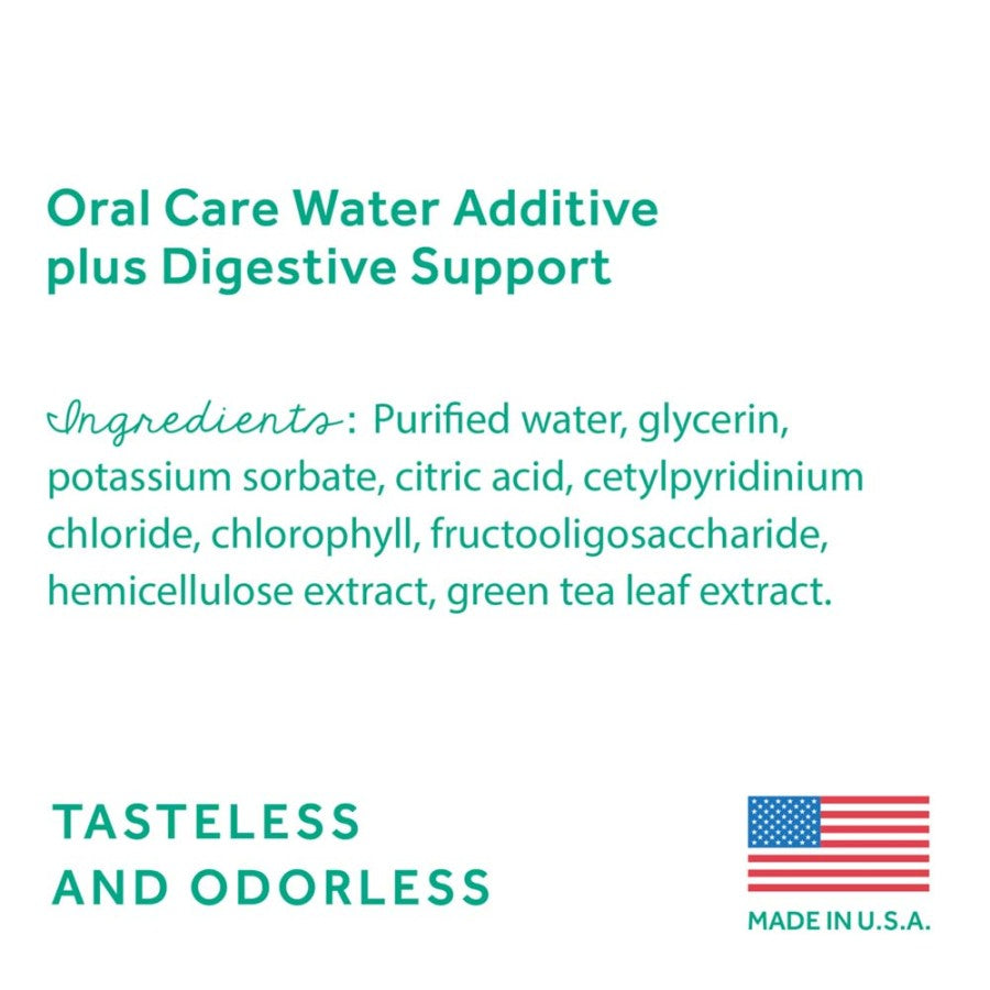 Oral care is about more than making your pets’ smiles sparkle—it’s an important component of their overall health. In fact, 80% of dogs and 70% of cats begin to show signs of oral disease by age 3. With Fresh Breath Oral Care Water Additive Plus Digestive Support, dogs and cats can benefit from daily plaque and tartar defense, simply by drinking from their water bowl. Plus, probiotics support healthy digestion. Easy to use for both you and your pet—no brushing required.