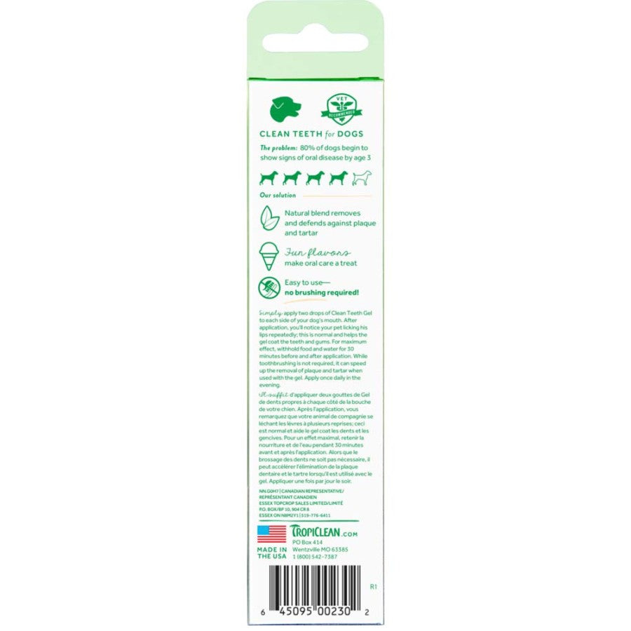 - Use Instructions: Simply apply two drops of Clean Teeth Care Gel to each side of your dog's mouth. After application, you'll notice your pet licking his lips repeatedly, this is normal and helps the gel coat the teeth and gums. For maximum effect, withhold food and water for 30 minutes before and after application. While tooth brushing is not required, it can help with the removal of plaque and tartar when used with the gel. Apply once daily in the evening.