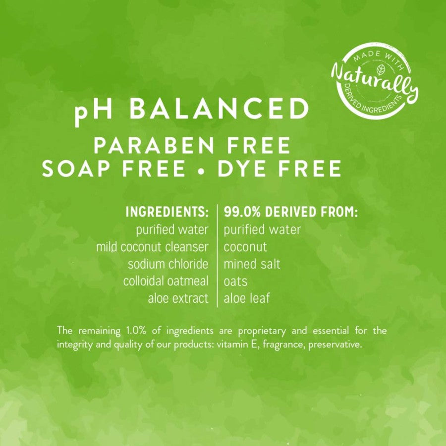 - Ingredients: Purified Water, Mild Coconut Cleanser, Avena Sativa Oatmeal, Vitamin E, Aloe Extract