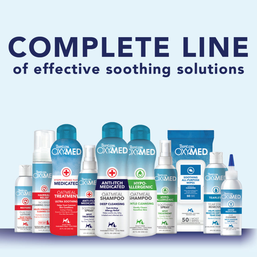 OxyMed Hairball Relief No-Rinse Foaming Shampoo is enriched with a botanical blend of blueberry and kiwi extracts. This hydrating formula contains provitamin B5 and nourishing proteins that help minimize breakage and promote healthy skin and coat.
