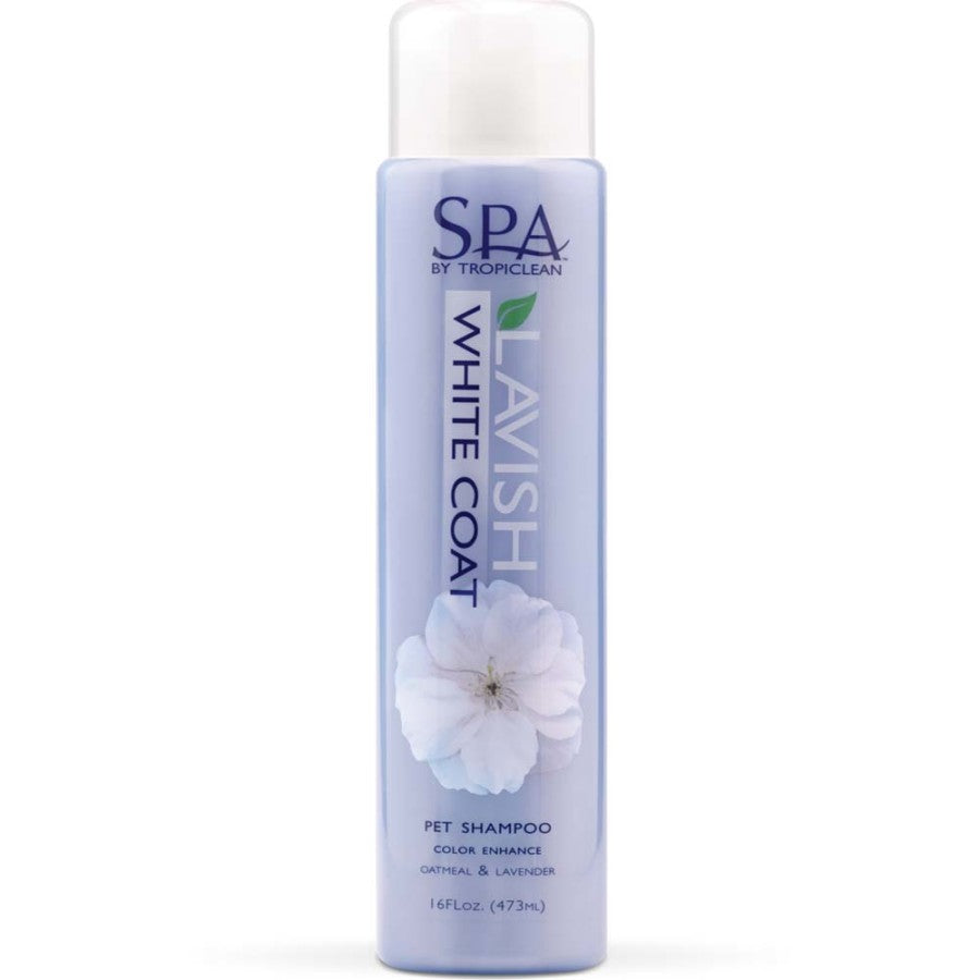 SPA by TropiClean White Coat Pet Shampoo gently removes dulling build-up and residues that can make white coats look dingy or faded, while bringing out a bright shine for maximum impact. It refreshes and perfects colors to create a beautiful radiant glow. SPA by TropiClean White Coat Pet Shampoo intensifies glistening highlights and amplifies mega-watt shine without adding or depositing color to your dog or cat’s coat. No bleach, peroxide, ammonia, or alcohol.