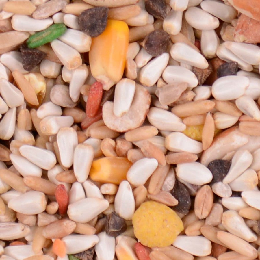 - Ingredients: Safflower Seed; Oat Groats; Wheat; Shelled Peanuts; Corn; Buckwheat; Shelled Sunflower Seed; Millet; Lentils; Safflower Oil; Fd&C Red No. 40; Fd&C Yellow No. 5; Fd&C Blue No. 1; Corn Distillers Dried Grains; Limestone Ground; Dl-Methionine; Mineral Oil; Vitamin E Supplement; Ascorbic Acid; D-Calcium; Pantothenate; Biotin; Vitamin K (Menadione Sodium Bisulfite Complex) ( A Source Of Vitamin K Activity); Vitamin A Supplement; Riboflavin Supplement; Pyridoxine Hydrochloride; Thiamine Mononitrate; Vitamin B12 Supplement; Niacin Supplement; Vitamin D3 Supplement; Folic Acid