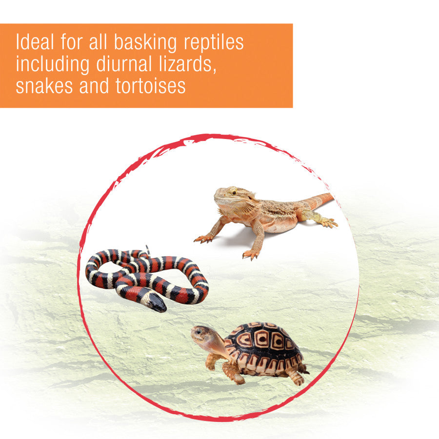 - Ideal for all basking reptiles including diurnal lizards, snakes, and tortoises