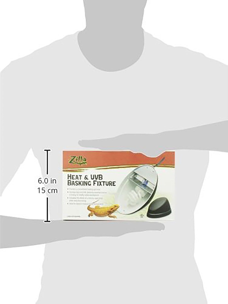 Get the combination of heat, light and UVB from one compact fixture. The Heat & UVB Basking Fixture's unique design creates a basking area where heat, light and UVB are concentrated. Uses one Zilla Fluorescent Coil Bulb and one Zilla Mini Halogen Bulb and can be tailored for desert or tropical habitats. Bulbs not included.