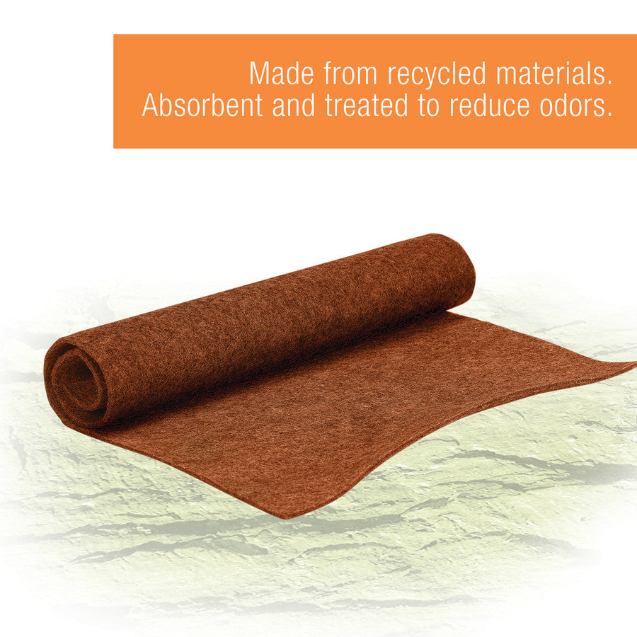It’s easy to keep your reptile’s habitat safe, clean and comfortable with a Zilla Terrarium Liner. A versatile and simple bedding option for a variety of pets, these liners are perfect for beginner pet owners and juvenile reptiles. The liners cannot be ingested and offer a safe alternative for reptiles prone to accidentally eating loose bedding during feeding. They are treated with a biodegradable enzyme that minimizes odors in the habitat, keeping your habitat fresh for longer. The material is absorbent and non-abrasive, designed to soak up any potential mess while also providing comfort to your reptile. When it comes time for cleaning, the liner is easy to remove and can be cleaned by simply rinsing with cold water. The rolls come in a variety of sizes as well as in plush green or brown. To install, simply roll out the carpet and cut to size as needed. If you’re looking for a safe, clean and low-maintenance bedding option for your reptile, the Zilla Terrarium Liner is the easy choice. Celebrate your pet and Rep Yourself, with Zilla.