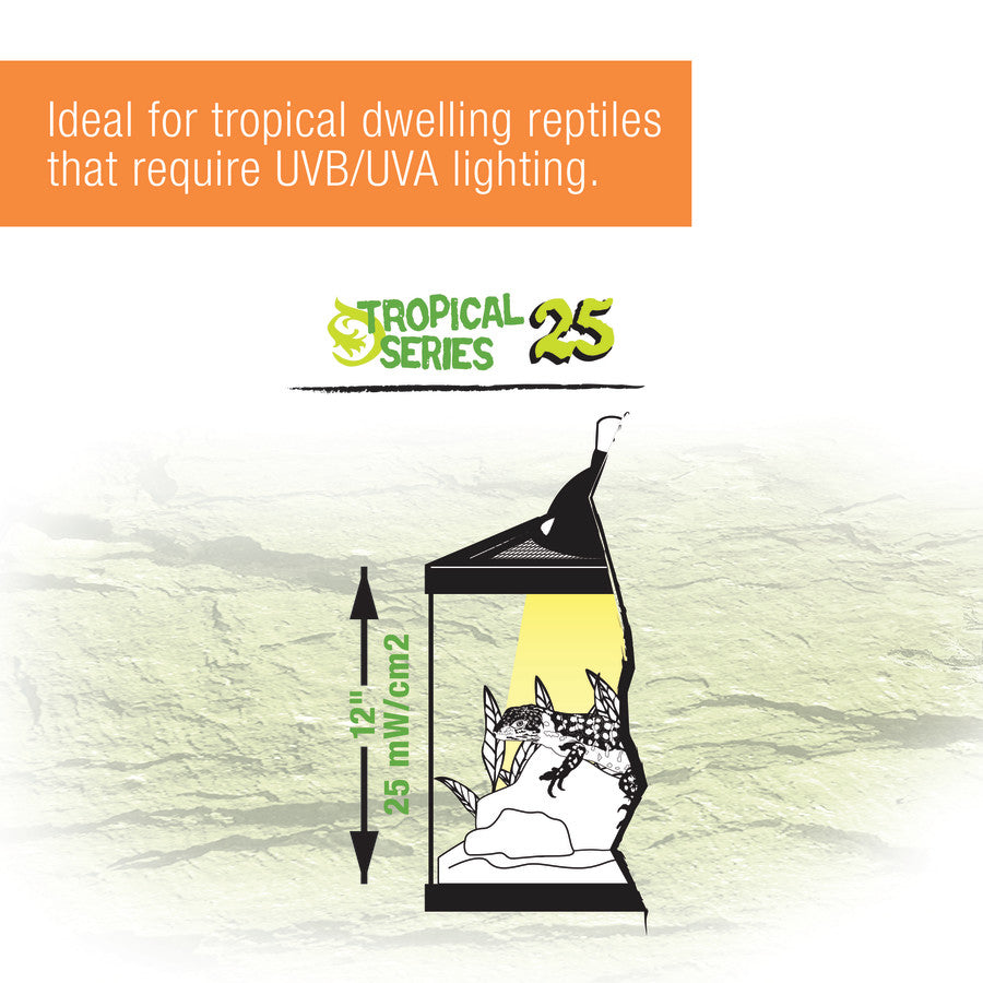 - Tropical 25 T8 bulb is ideal for tropical dwelling reptiles that require UVB/UVA lighting